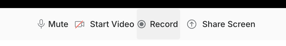 - During the call, you will have options at the bottom of the window to disable your camera and microphone, as well as to record the video call and share your screen.