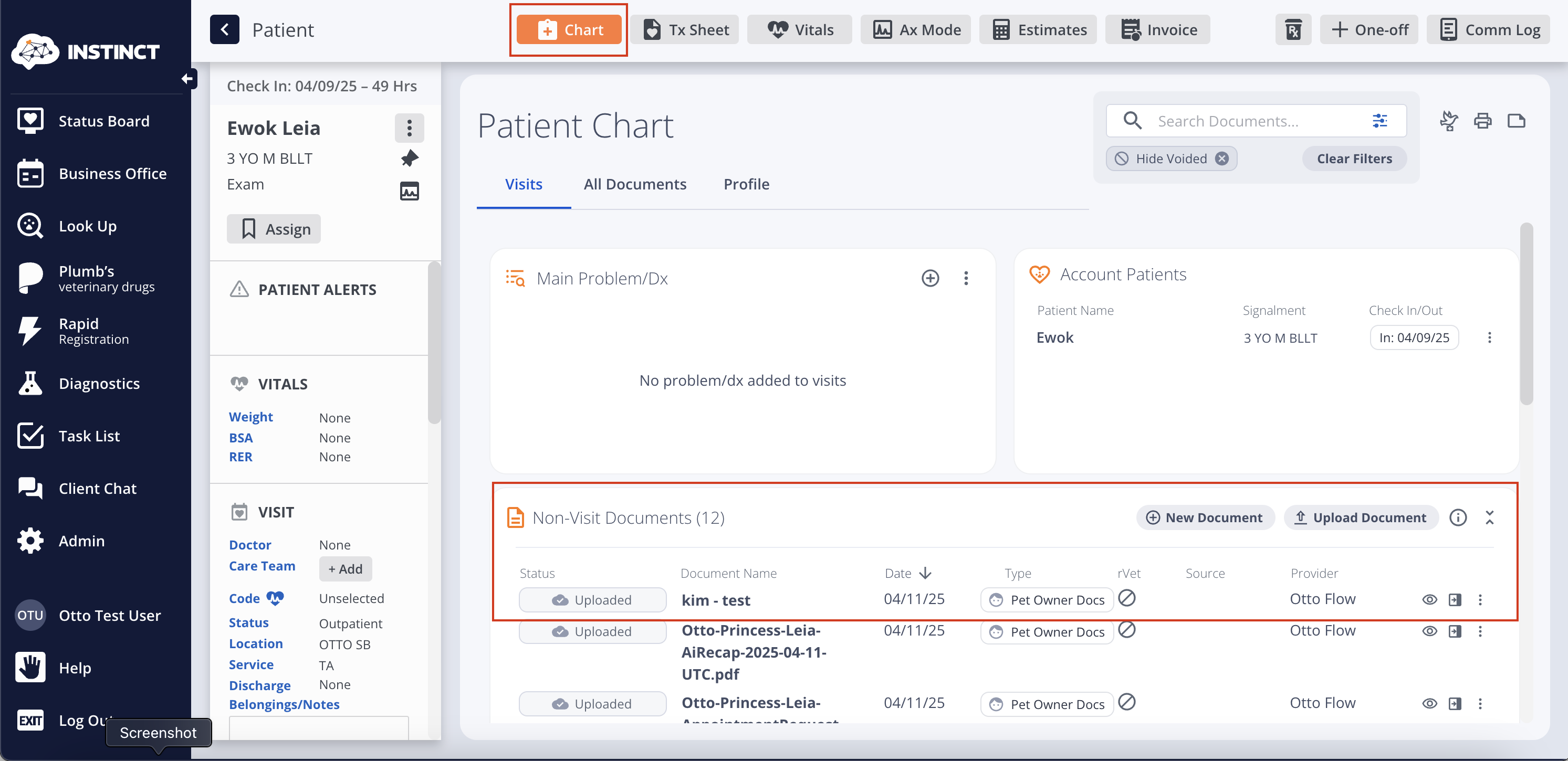 In Vetspire, conversations, forms, and AI summaries are exported as pdfs and added to the "Uploads" category in a patient's chart.
