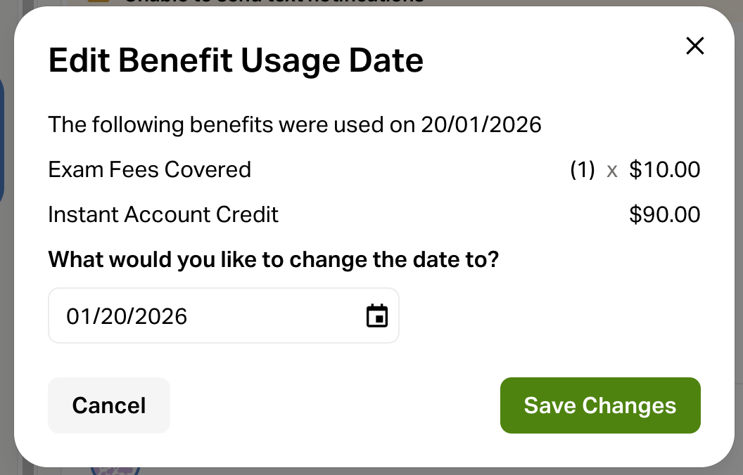 ⚠️ Only the most recent benefit usage of an active membership can be edited.