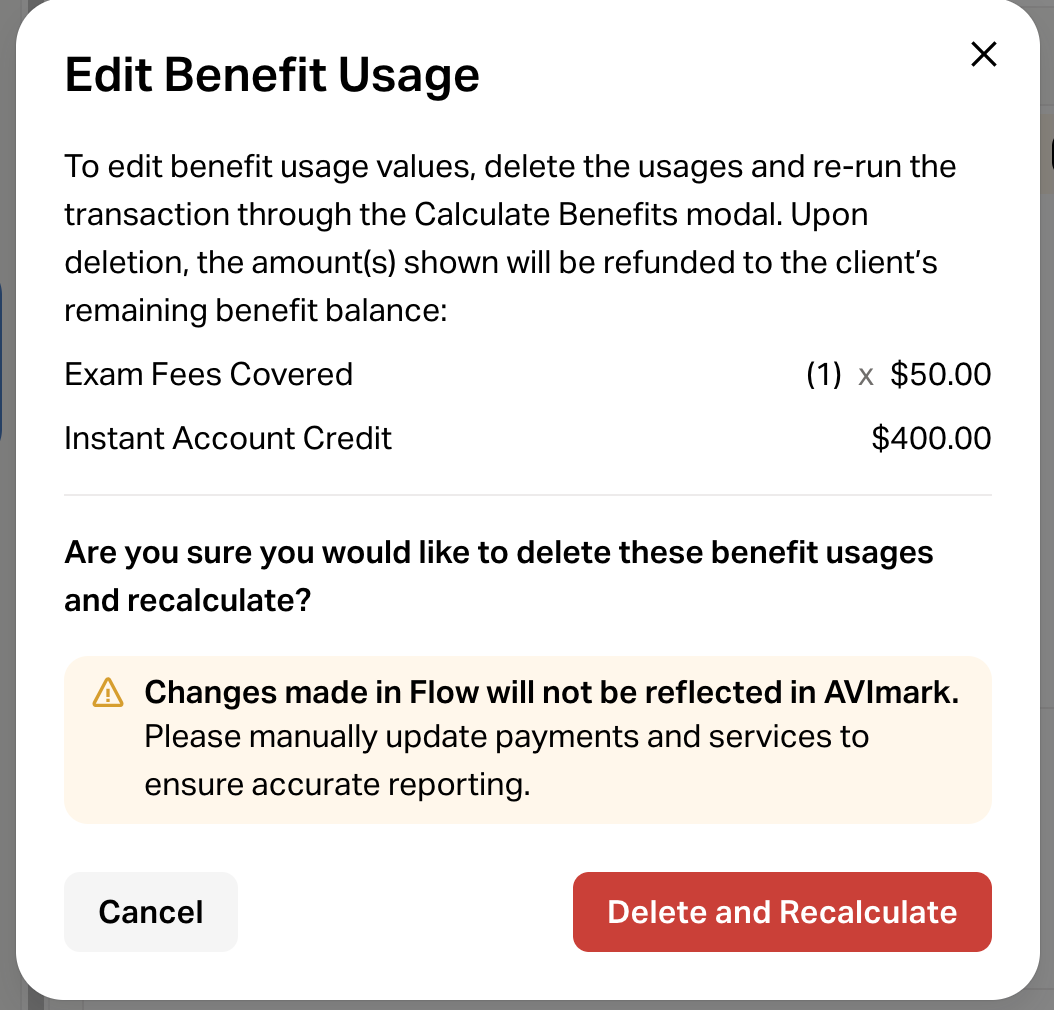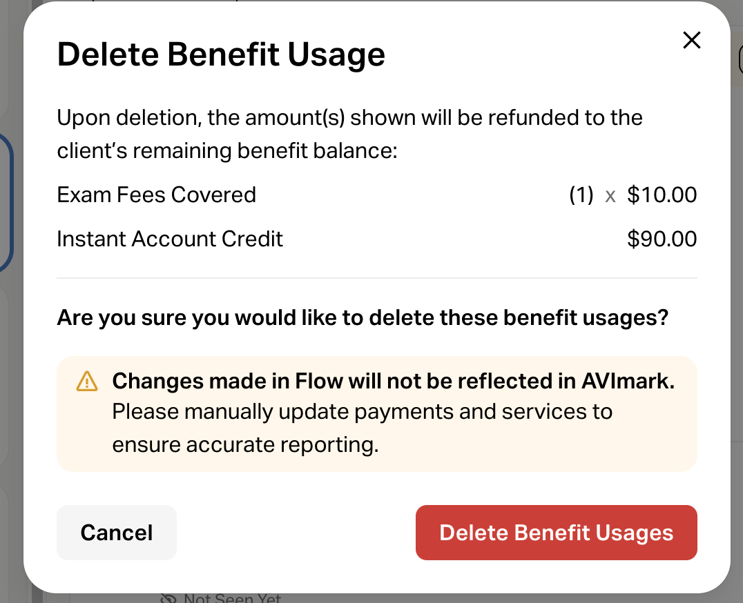 Update your PIMS accordingly, then click Delete Benefit Usage.