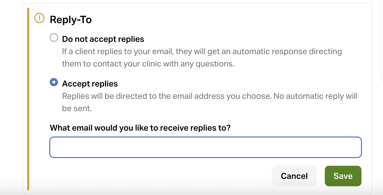 Lastly, you have the option to set a Reply-To for your campaign. Important note: The email address entered here would have to be one that is monitored for all clinics in your campaign. Said another way, it's not possible today to set unique reply-to email addresses for every clinic. If this option is used, it must be an email address that can support replies from your selected clinic's campaigns.