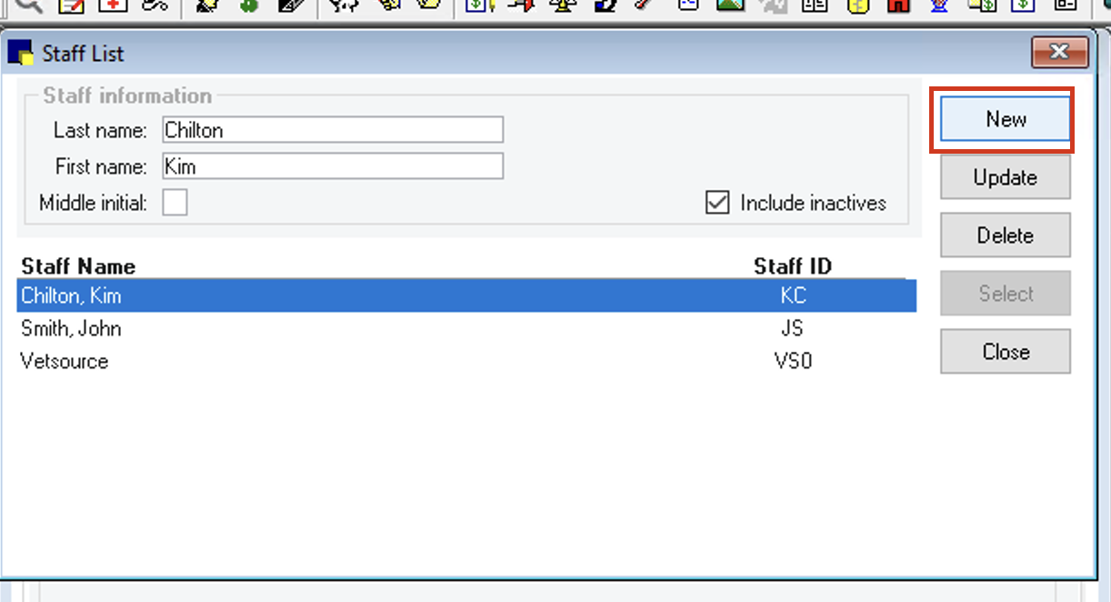 2. Click New. The Staff Information dialog box appears.