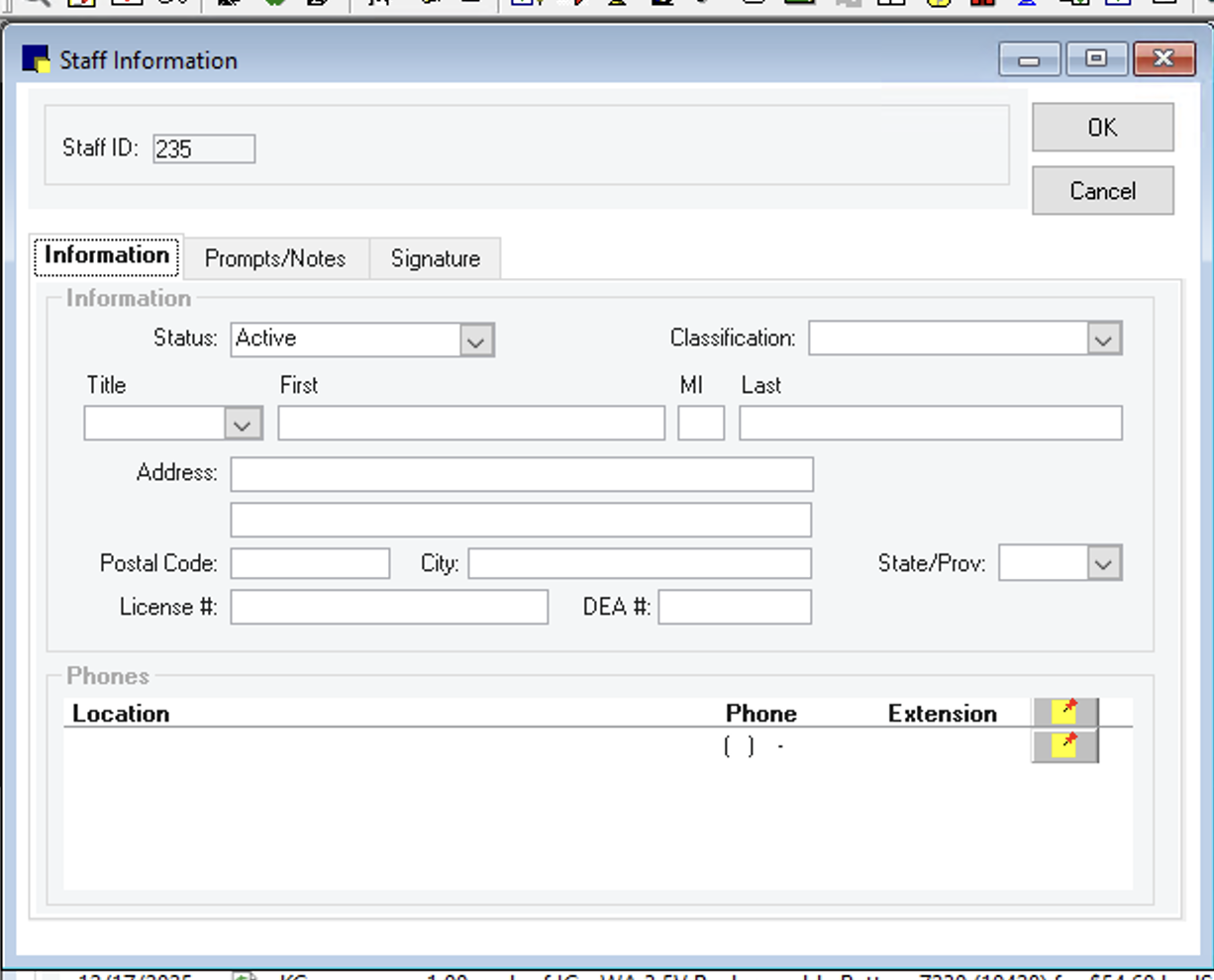 7. Type the Phone Information, including any Notes and choose OK. The Staff Information dialog box reappears.