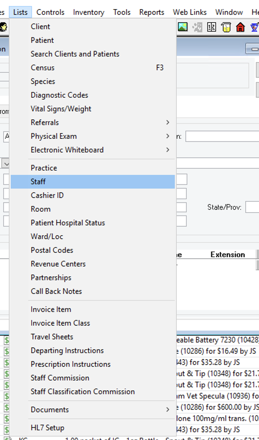 - On the Lists menu, select Staff